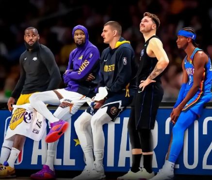 首发(5人):卢卡·东契奇(湖人)、库里(勇士)、亚历山大(雷霆)、约基奇(掘金)和文班亚马(马刺);替补(7人):詹姆斯(湖人)、杜兰特(火箭)、爱德华兹(森林狼)、德文·布克(太阳)、切特·霍姆格伦(雷霆)、贾马尔·穆雷(掘金)和阿夫迪亚(开拓者)。